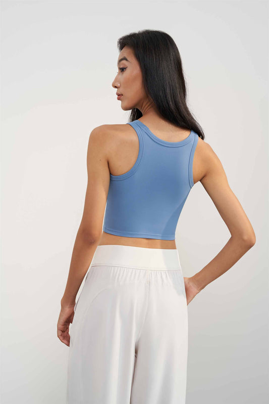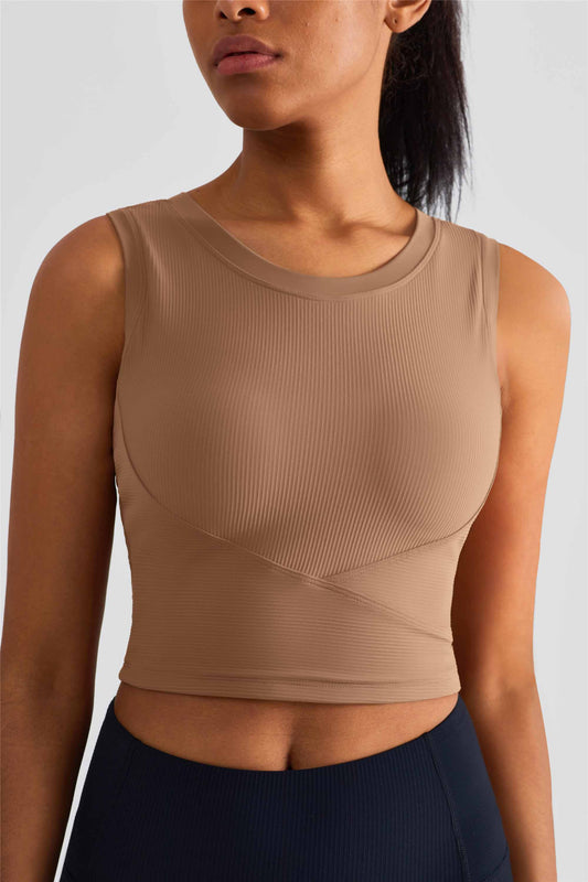 WX1578-Nuls new nude full fixed cup yoga vest lengthened round neck waist waist beauty back sports fitness vest women