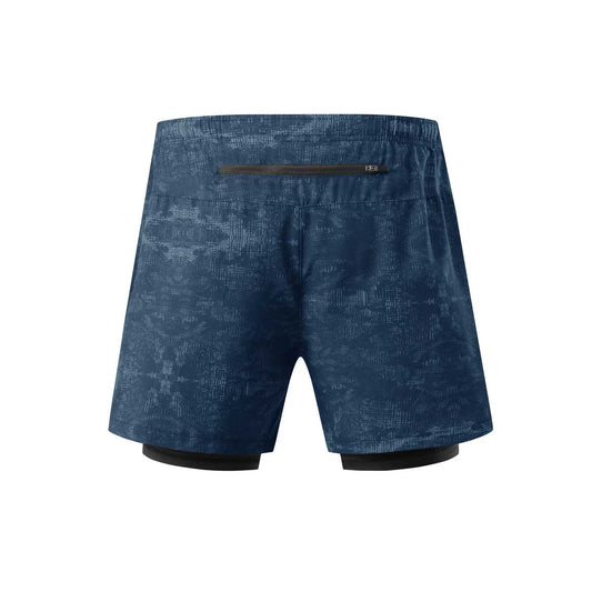 HRDK22006-Summer double-layer fitness shorts, cross-border new product quick-drying sports shorts, fake two-piece inner lining printed swim trunks for men